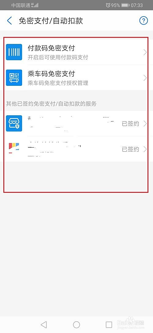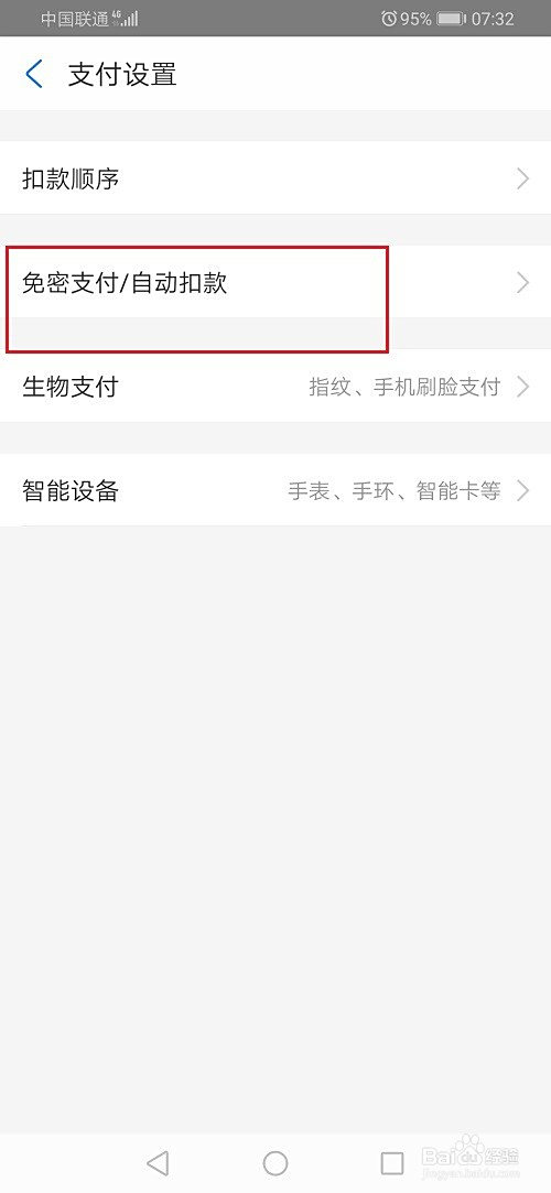 第四步进去支付设置之后,点击免密支付/主动扣条目,如下图所示: