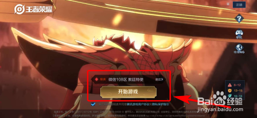 1、在王者荣耀登录界面,点击“起头游戏”。