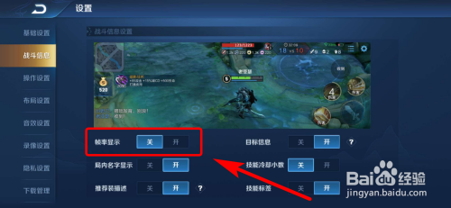 4、开启“帧率显示”功能。