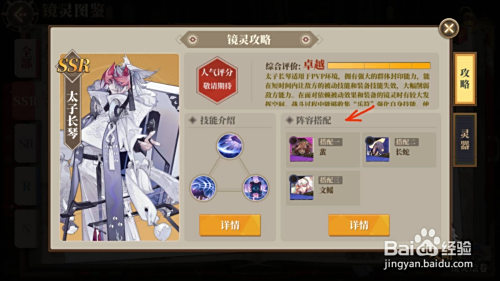 在对战过程中,可以放置蜚、长蛇、文鳐进行搭配,这样的声势在防御和输出方面都很是好,总的来说,“太子长琴”仍是值得培育的
