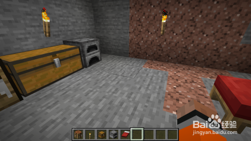 之后我们将工作台、熔炉、床、箱子放置在我们的出亡所内就可以了,最好我们在箱子里面储存一些食物,这样我们就可以在出亡所内和怪物打持久战了,我们可以在出亡所内开一个矿道来熬过难熬的夜晚。
