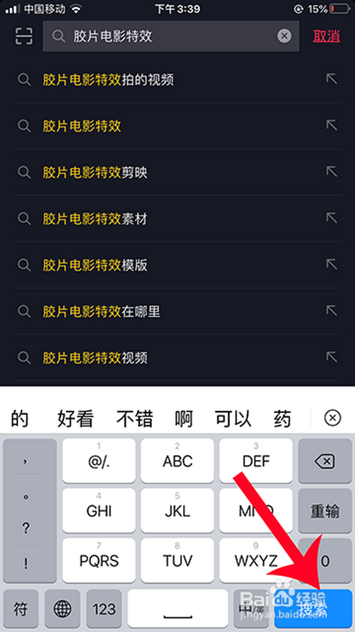 在搜刮框输入“胶片片子特效”点击“搜刮”。