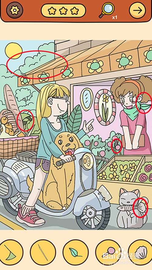 红色圈住的部门就是要找的物品,大师点击完,就可以通关。