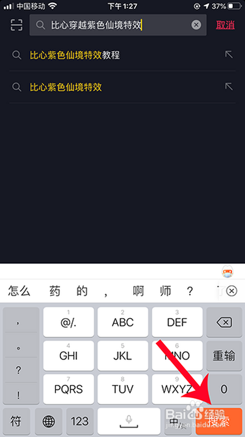 在输入框输入“比心穿越紫色仙境特效”点击“搜刮”。