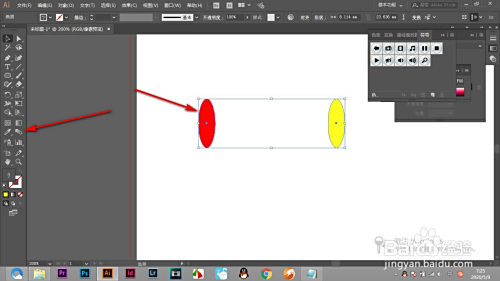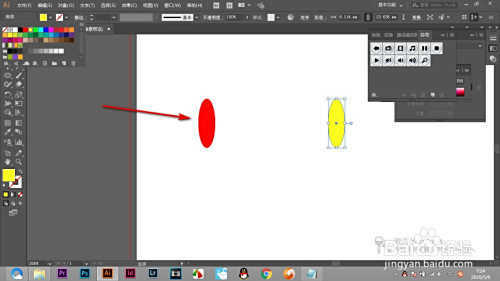 1.起首我们绘制出两个椭圆,颜色是红色和黄色。