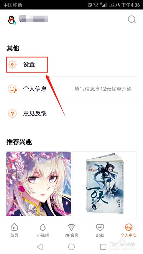 进入小我中间界面,标的目的上滑动页面,然后点击“设置”的选项。