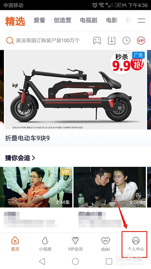 登录手机腾讯视频APP,点击页面右下角的“小我中间”。