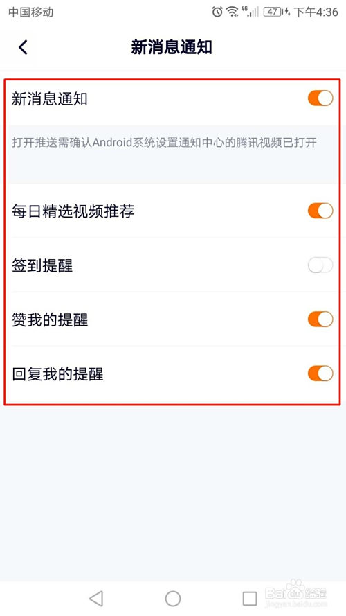 如需要封闭新动静通知功能,则点击红色开关,将其封闭即可。