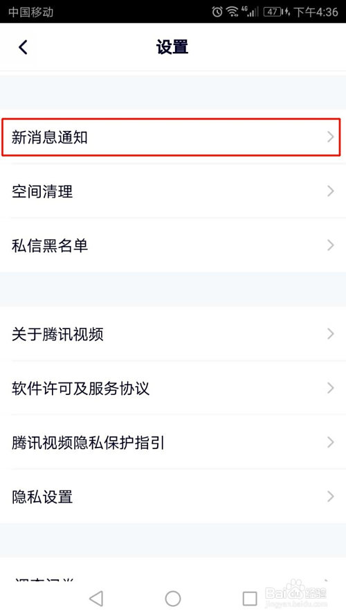 进入设置界面,标的目的上滑动页面,然后点击“新动静通知”的选项。