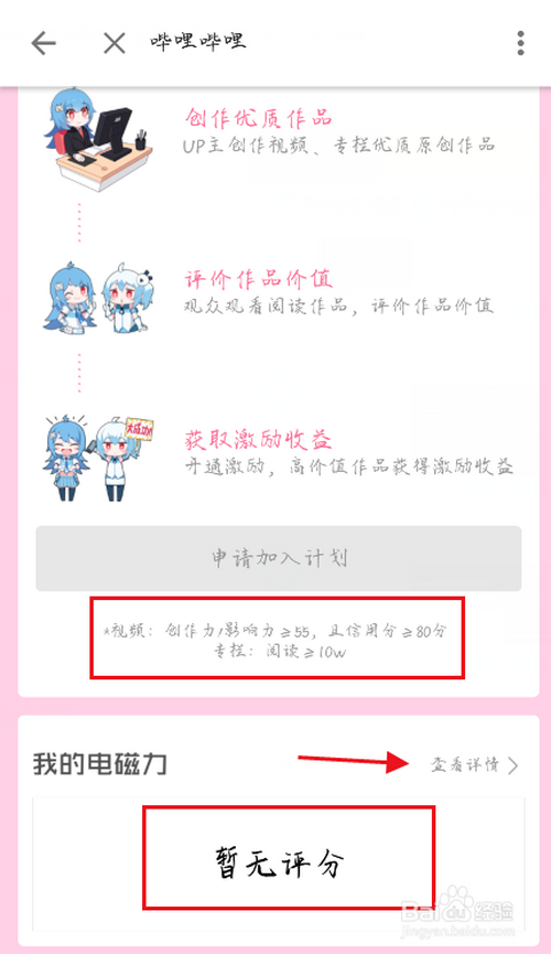 可以看到要开通收益,要高于划定的评分,若是没有评分的话,点击查看详情。