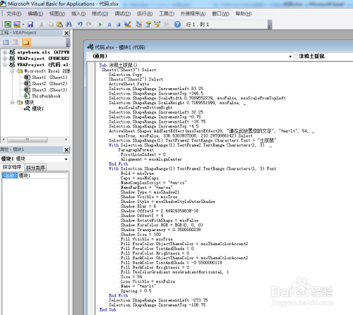 5.在VBA编纂界面,写入指定的VBA代码,然后点击封闭按钮。