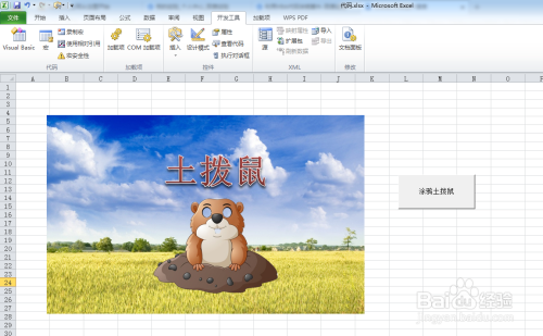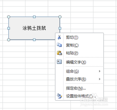 7.将按钮控件定名为“涂鸦土拨鼠”,然后点击右键,选择“指定宏”选项。