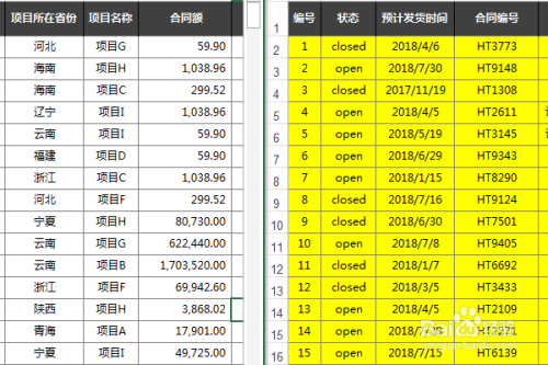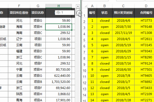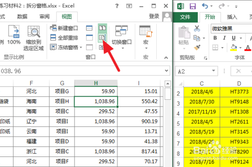 颠末以上的设置之后,我们拖动肆意一个Excel工作薄的滚动条,可以看到两个工作薄会同步滚动,这更有利于我们对比查看表格数据。