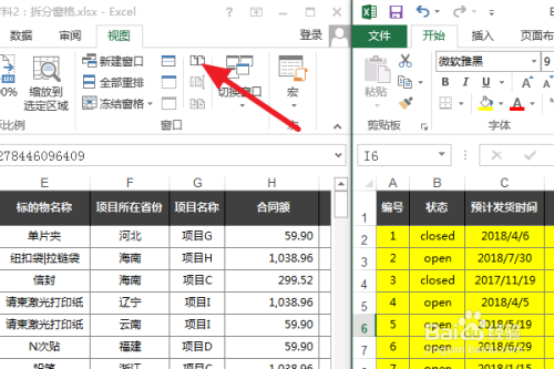 打开Excel两个要同步的工作薄。然后在任何一个Excel上点击上方视图。