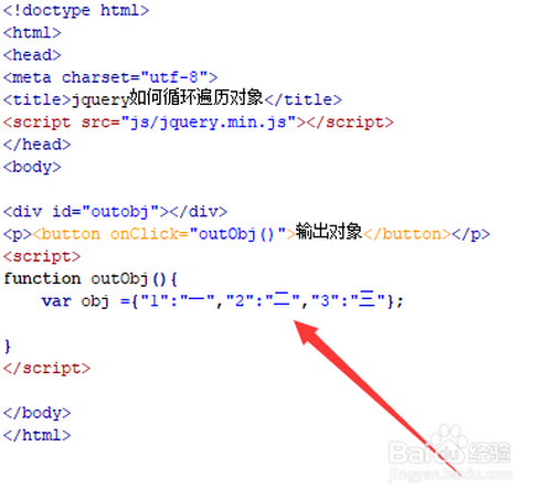 在js标签中,建立outObj()函数,在函数内,建立一个对象,保留在obj变量中。