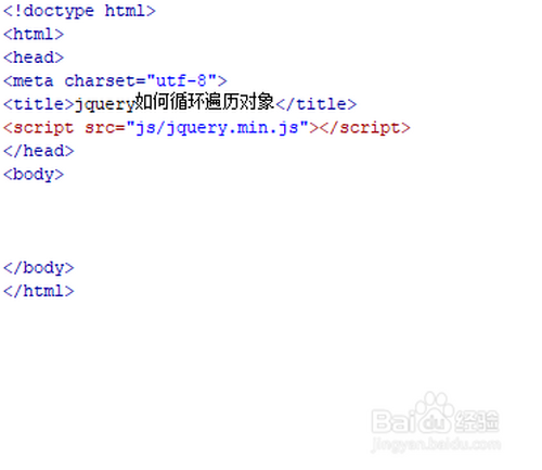 新建一个html文件,定名为test.html,用于讲解jquery若何轮回遍历对象。