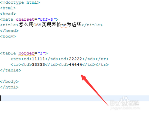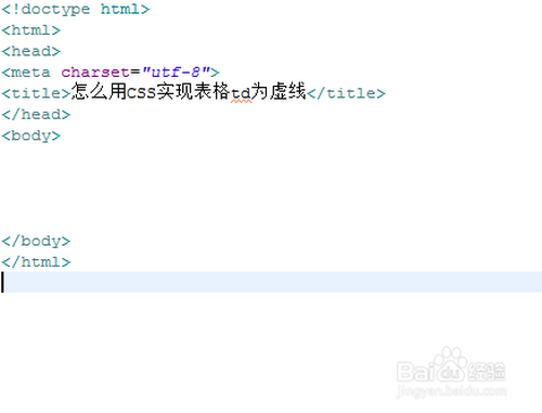 新建一个html文件,定名为test.html,用于讲解怎么用CSS实现表格td为虚线。