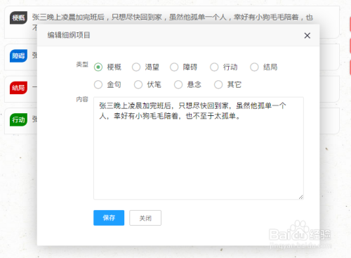 作品有了故事脉络后,我们需要将脉络细分为可以应用于章节的细纲。这与电视剧的剧情介绍高度相似。可以以什么人在什么处所赶上了什么人与事近似这种细分的体例进地细纲创作。细纲建立供给多种提醒性的选项功能。
