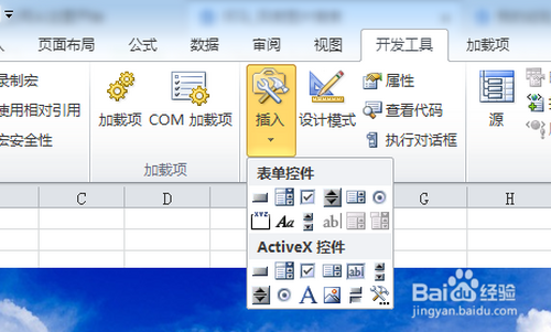 6.点击插入一个按钮控件。