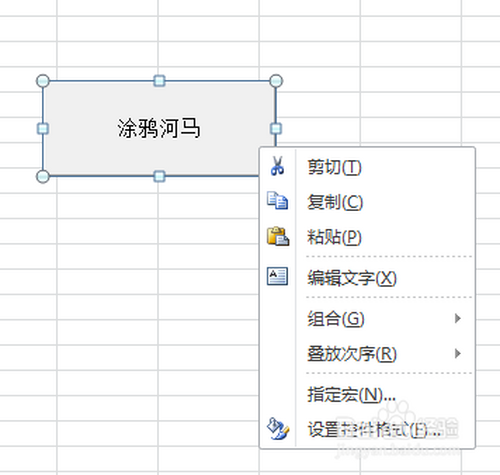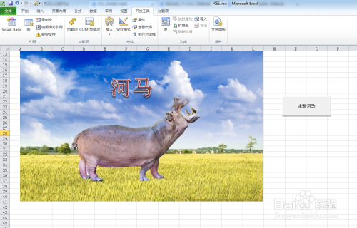 7.将按钮控件定名为“涂鸦河马”,然后点击右键,选择“指定宏”选项。