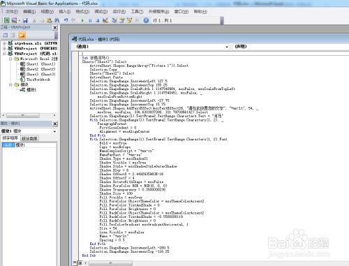 5.在VBA编纂界面,写入指定的VBA代码,然后点击封闭按钮。