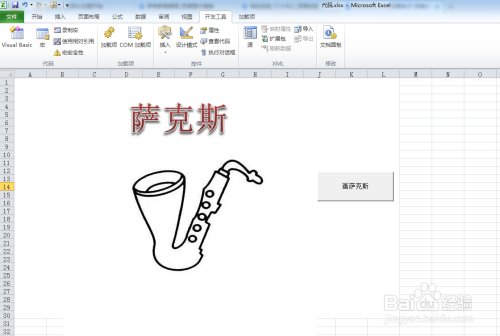 6.点击插入一个按钮控件,并定名为“画萨克斯”。