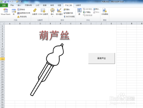 6.点击插入一个按钮控件,并定名为“画葫芦丝”。