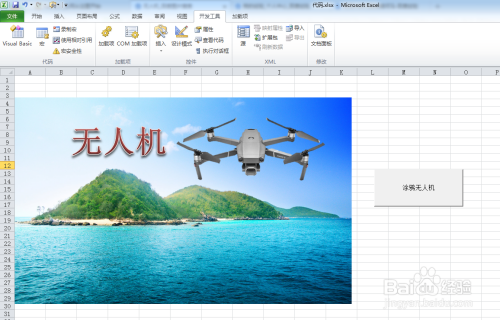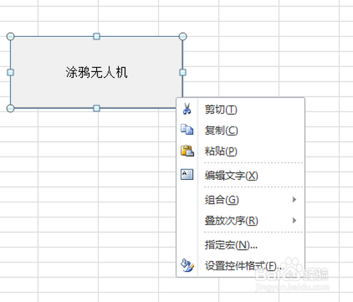 7.将按钮控件定名为“涂鸦无人机”,然后点击右键,选择“指定宏”选项。