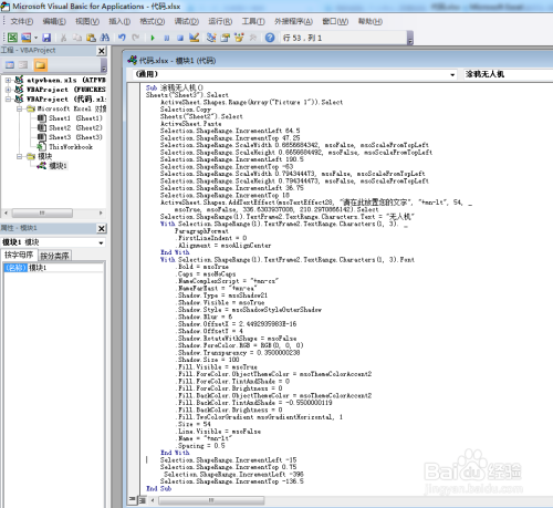 5.在VBA编纂界面,写入指定的VBA代码,然后点击封闭按钮。