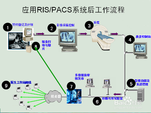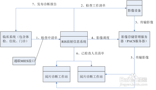 按照病院现有的工作流程和IHE相关的文件和建议,我们设计的PACS系统实施后的工作流程,如下图: