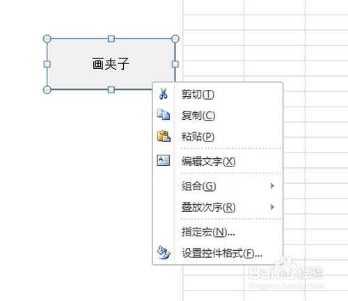 7.选中“画夹子”控件,然后点击鼠标右键,选择“指定宏”。