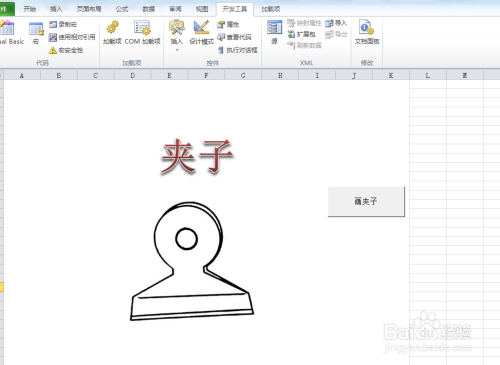 6.点击插入一个按钮控件,并定名为“画夹子”。