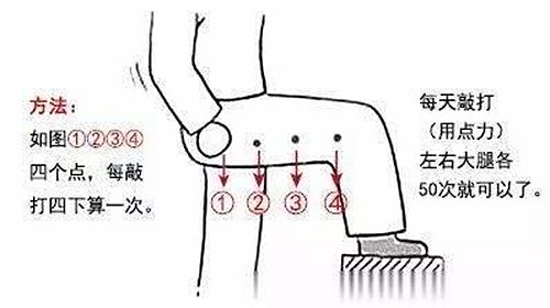 4、没事多敲胆经。胆经是人体十二经脉之一。刺激胆经,可以促进胆汁排泄,使血气上升,加强脾胃功能,血气供给充沛,可以解除体内多余垃圾。敲胆经的方式:伸直双腿,用拳头捶大腿外侧。从大腿外侧根到膝盖,敲打50下,一天三次。看电视,泡脚,和亲人聊天都可以做。