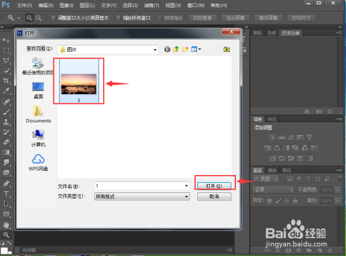 按ctrl+O,在打开窗口选中要处置的图片,点击打开;