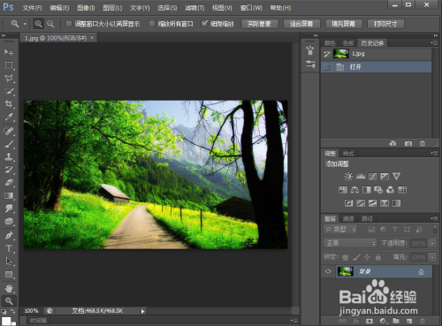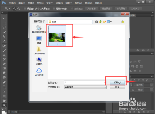 按ctrl+O,在打开窗口选中要处置的图片,点击打开;