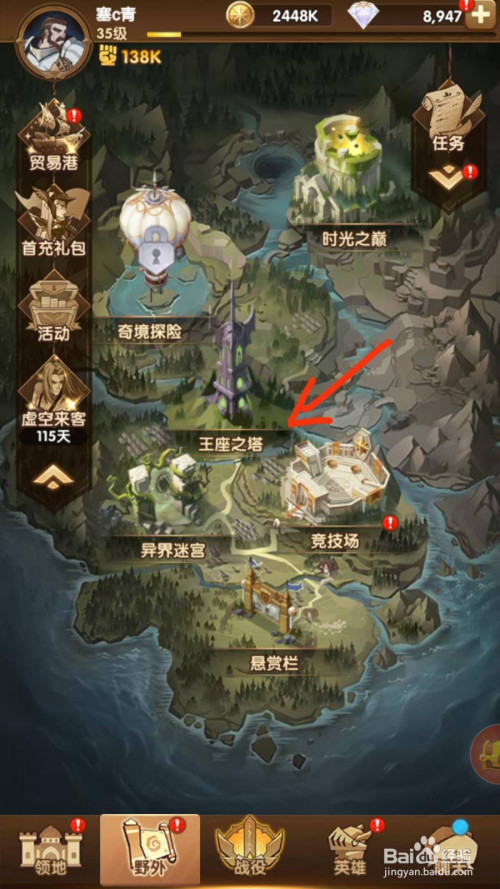 打开手机后进入剑与远征游戏,点击底部的“野外”