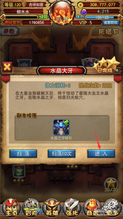 点击游戏本家儿菜单冒险,再点击子菜单副本按钮。