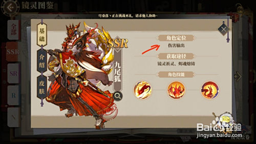 在山海镜花游戏中,“九从头至尾狐”的脚色定位是危险输出
