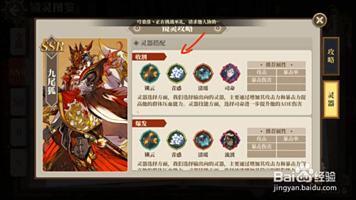“九从头至尾狐”常选择“锁云”这类进犯标的目的的器灵与之搭配,本家儿要增添结果进犯、输出、暴击