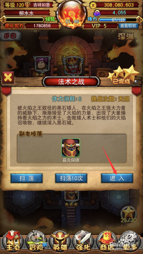 点击游戏本家儿菜单冒险,再点击子菜单副本按钮。
