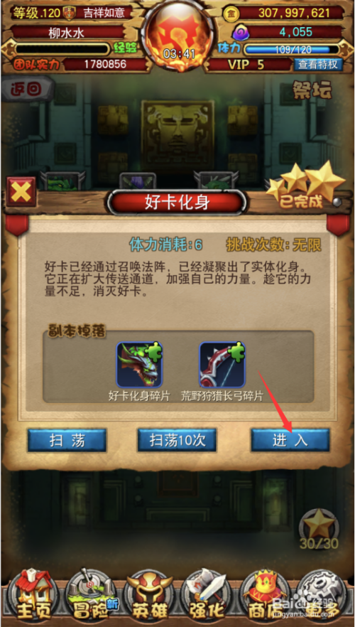 点击游戏本家儿菜单冒险,再点击子菜单副本按钮。