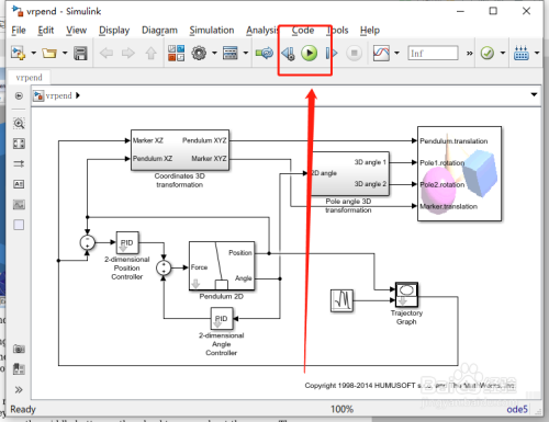 在Simulink编纂器窗口中,从模拟菜单中选择Run。