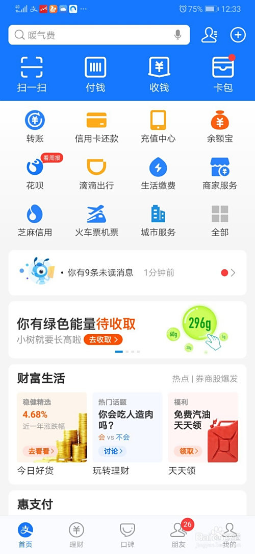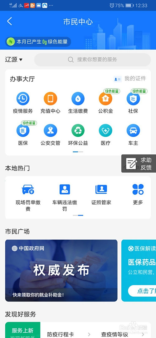 我们进入支付宝首界面之后,在上方点击一下城市办事。