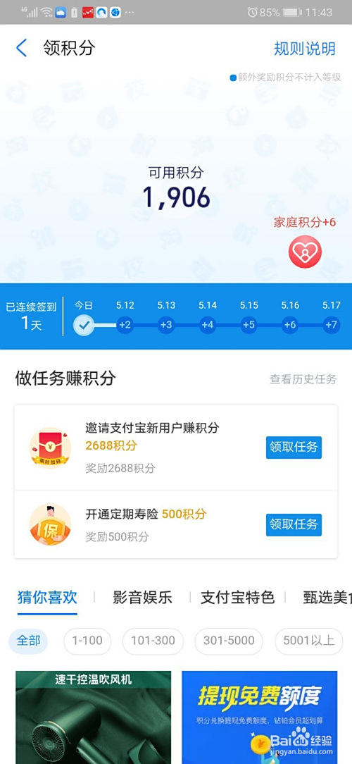在这,我们可以看到两个积分可以领取,一个是家庭积分,一个就是会员积分。