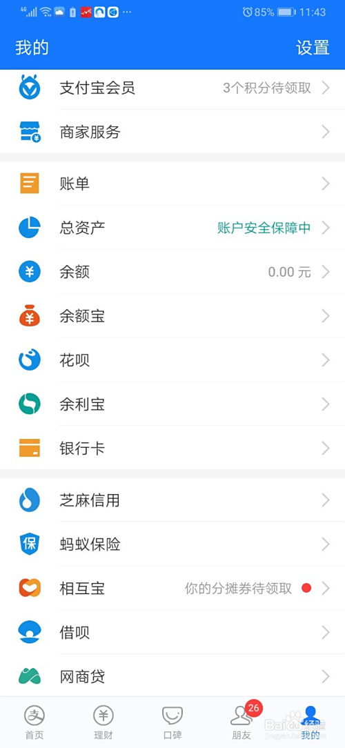 1、进入支付宝,点击我的。