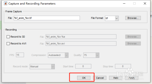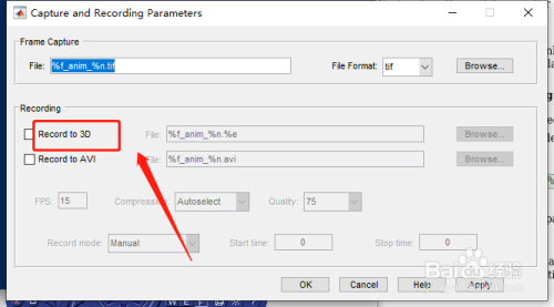 从“Recording”菜单中选择“Capture and Recording Parameters”。