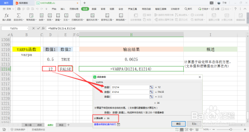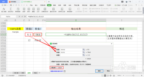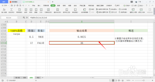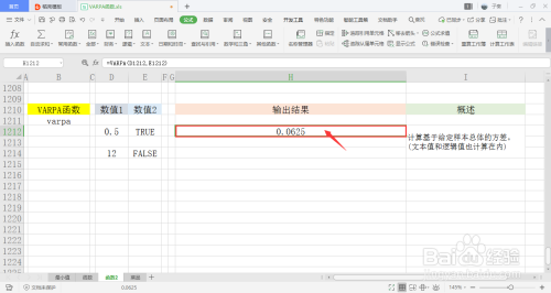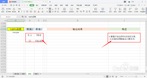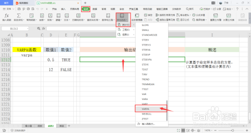 选中一个单位格用于存放输出成果,在菜单栏的公式下,打开其他函数中的统计下拉框,点击此中的VARPA函数。