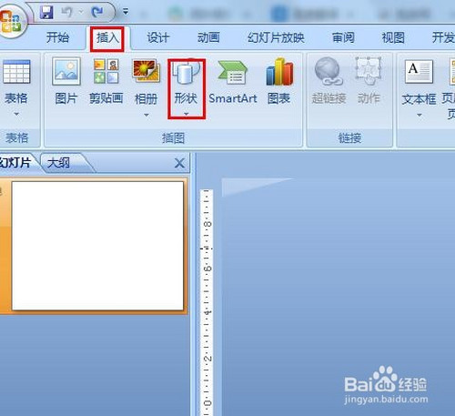 点击菜单栏“插入”,在“插图”东西栏中找到“外形”选项。