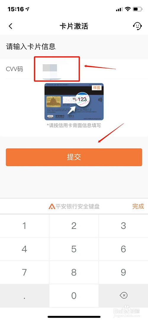 输入CVV码