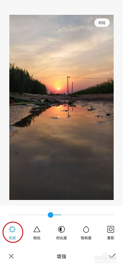 最后,进行画面的亮度调节,降低亮度,会使落日看起来更有味道。